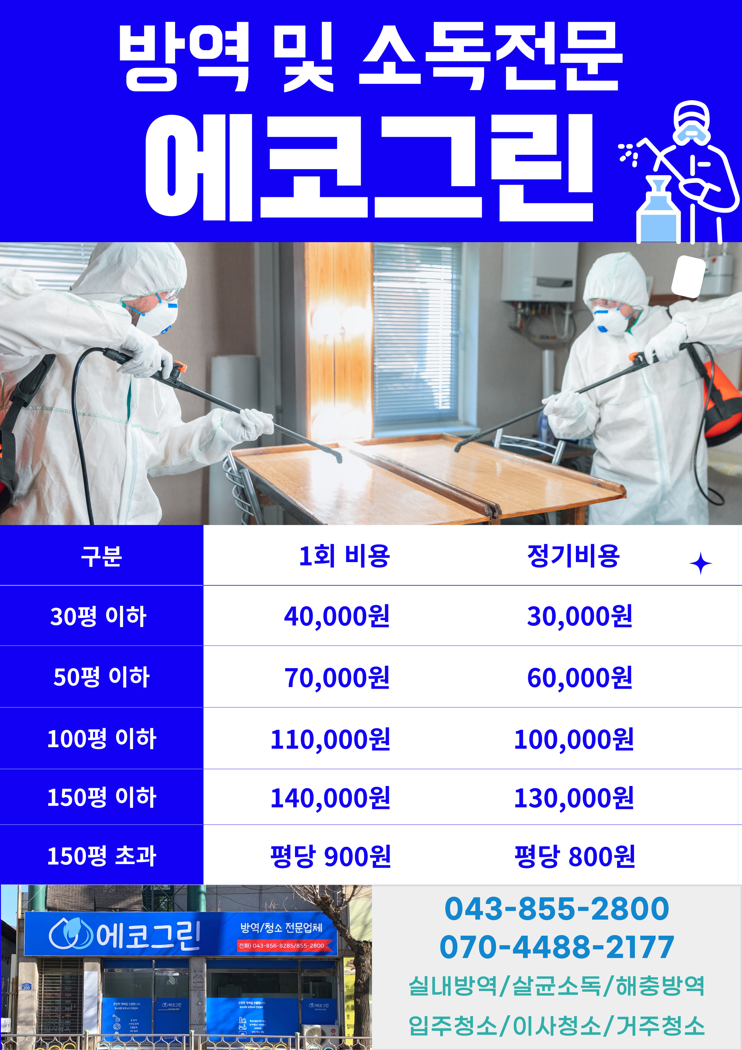 에코그린사업단 "방역 및 소독" 단가표를 첨부 사진과 같이 공지해드립니다.
